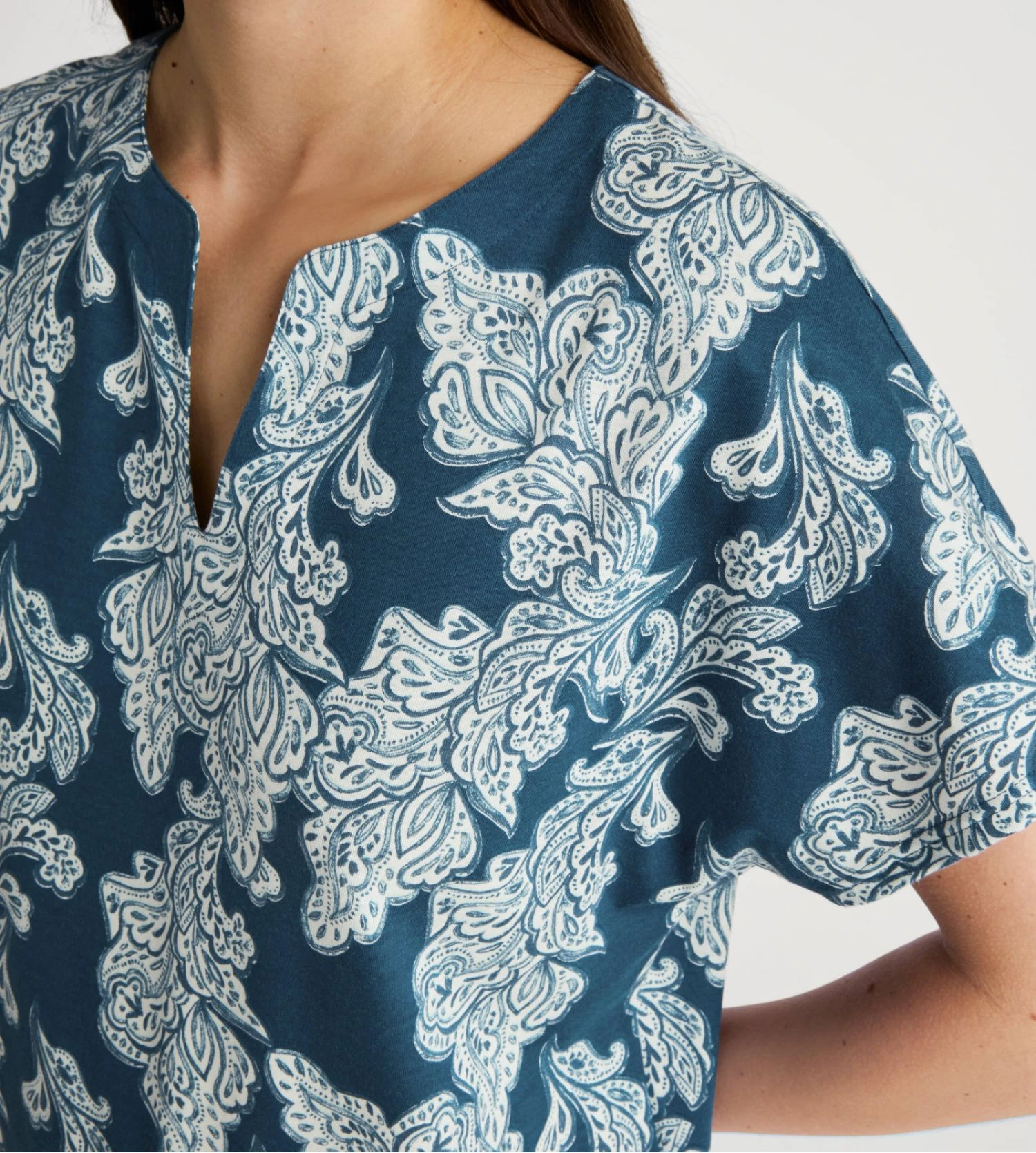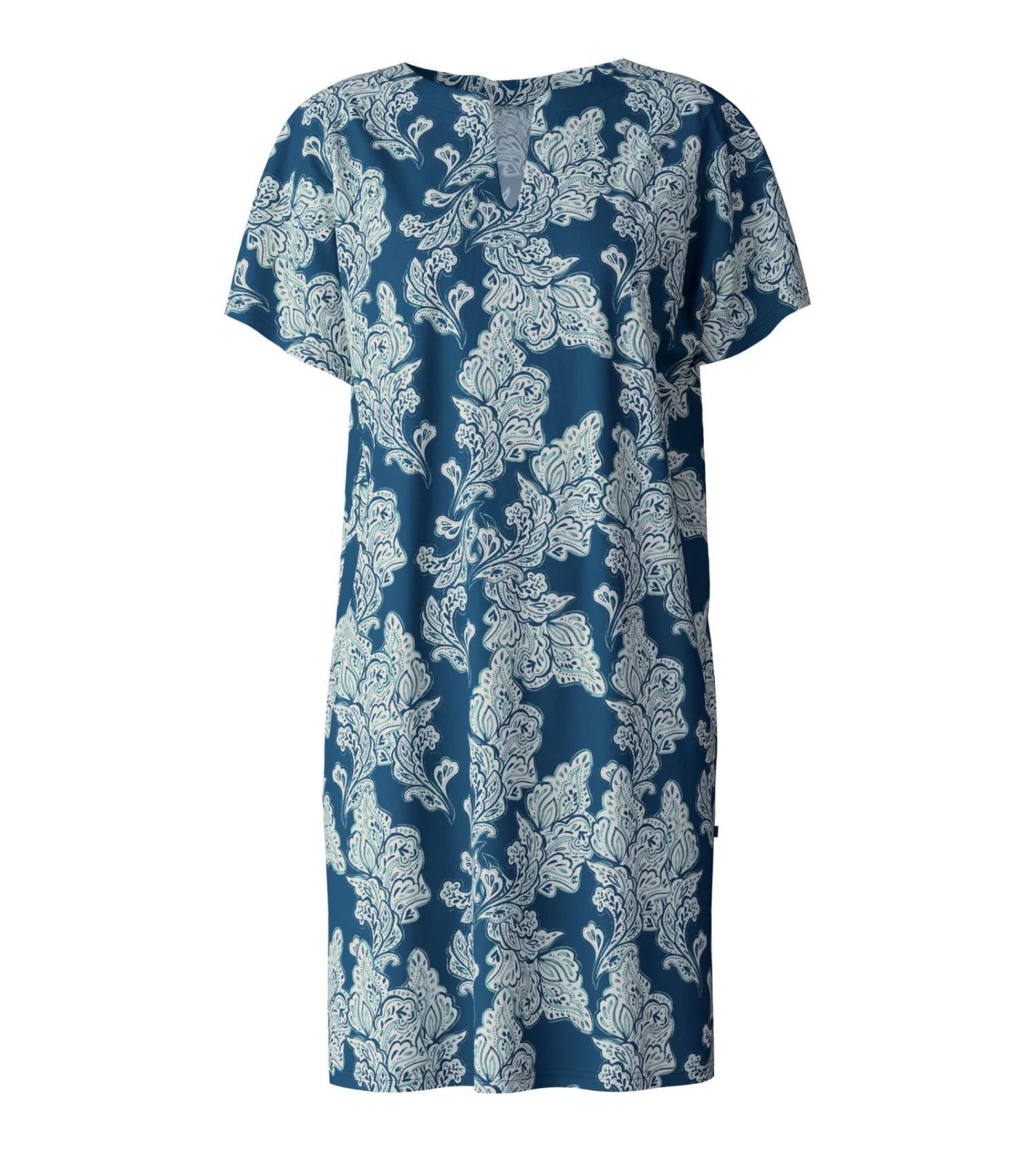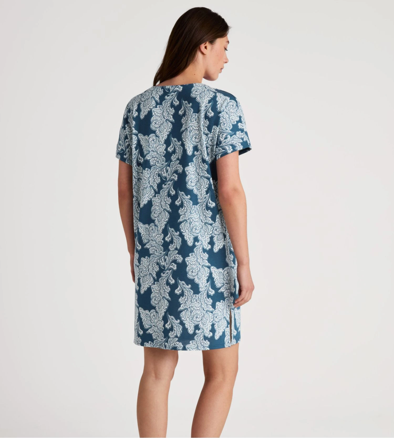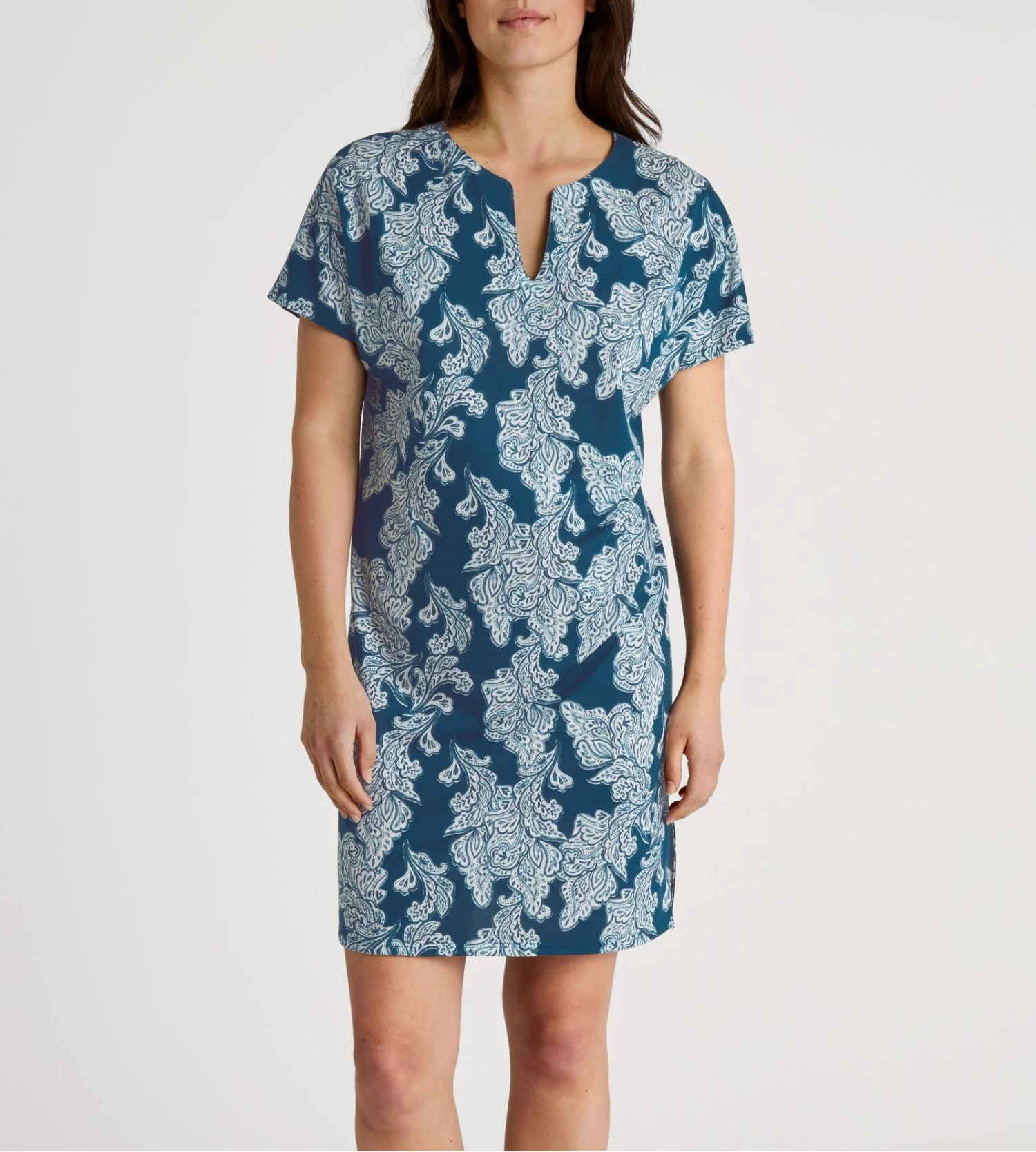 Issue de la collection Favourites Botanic de la marque suisse Calida, cette chemise de nuit courte se pare du coloris exclusif Deep Dive Petrol, un bleu pétrole profond et élégant. Sa coupe décontractée et son encolure en V offrent une silhouette moderne tout en garantissant un bien-être absolu pour un sommeil réparateur.