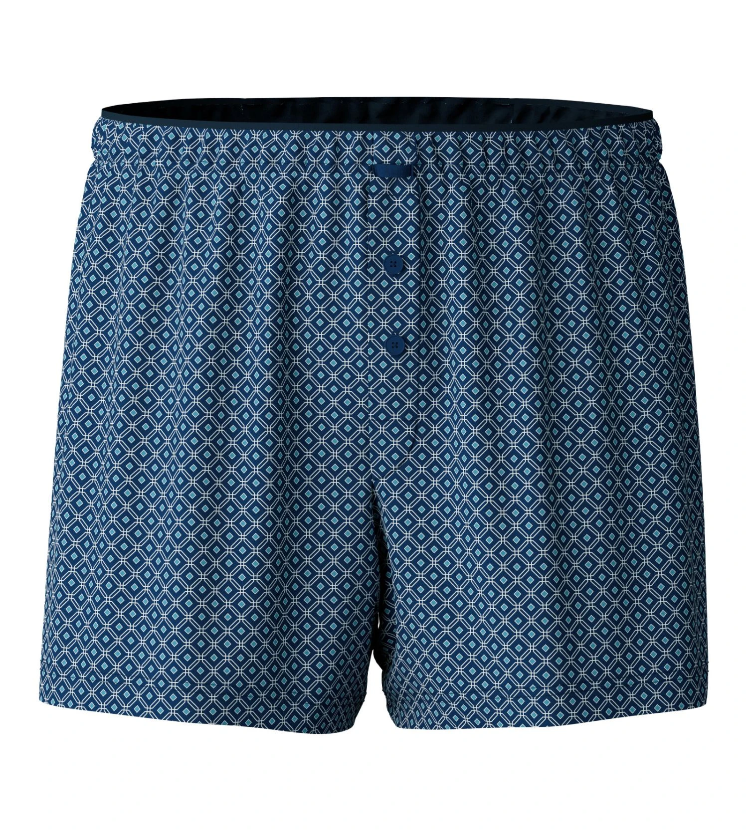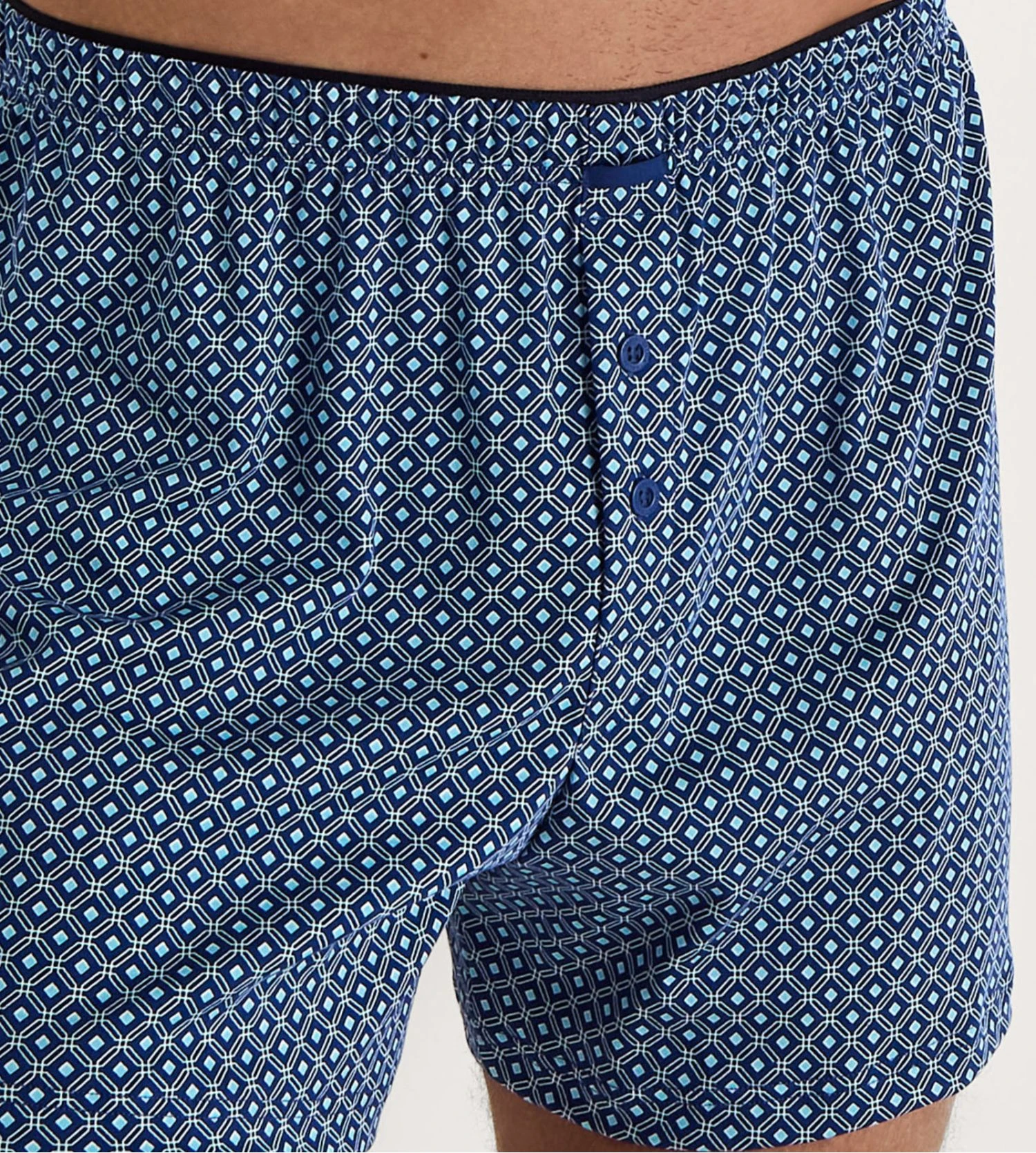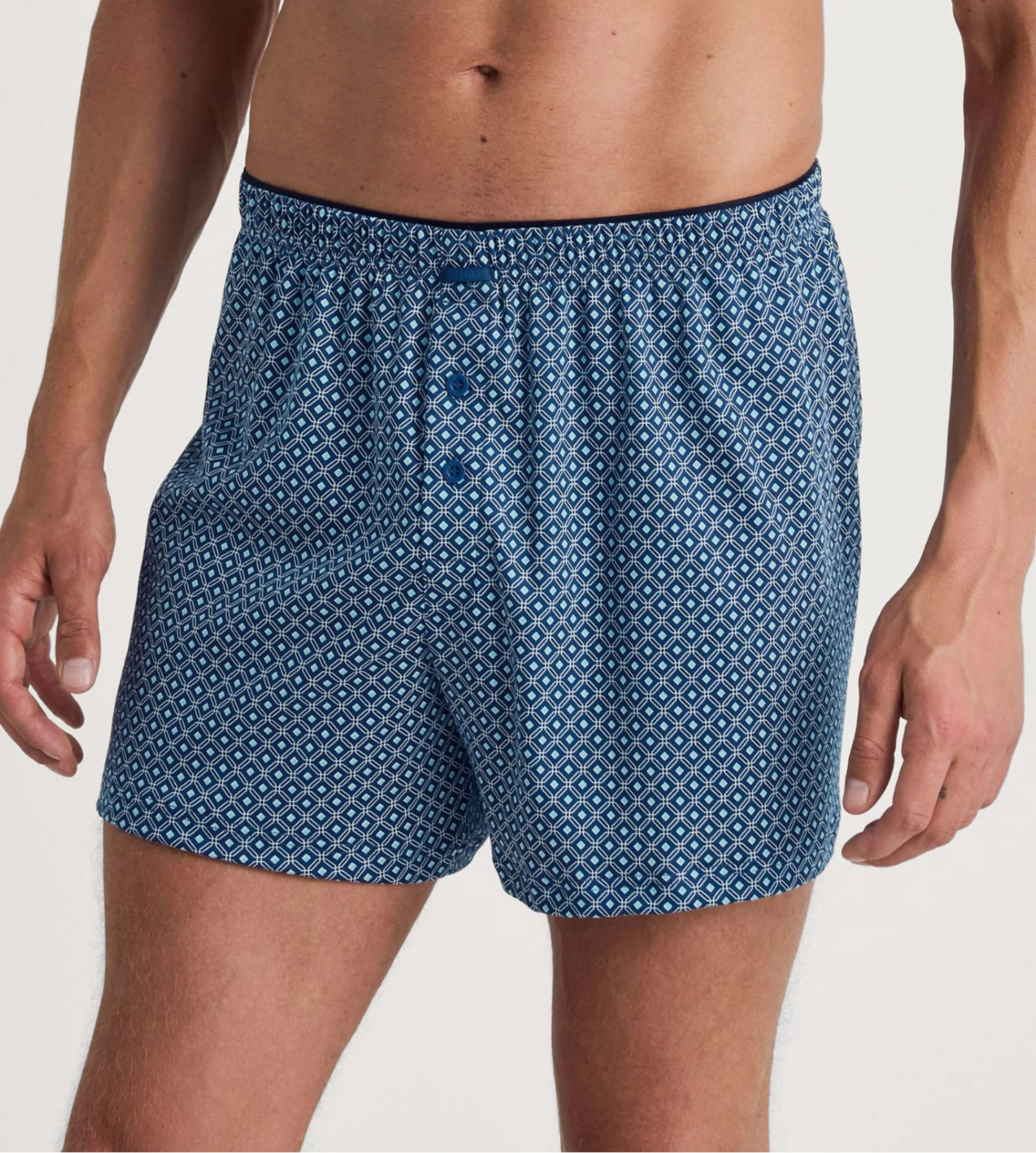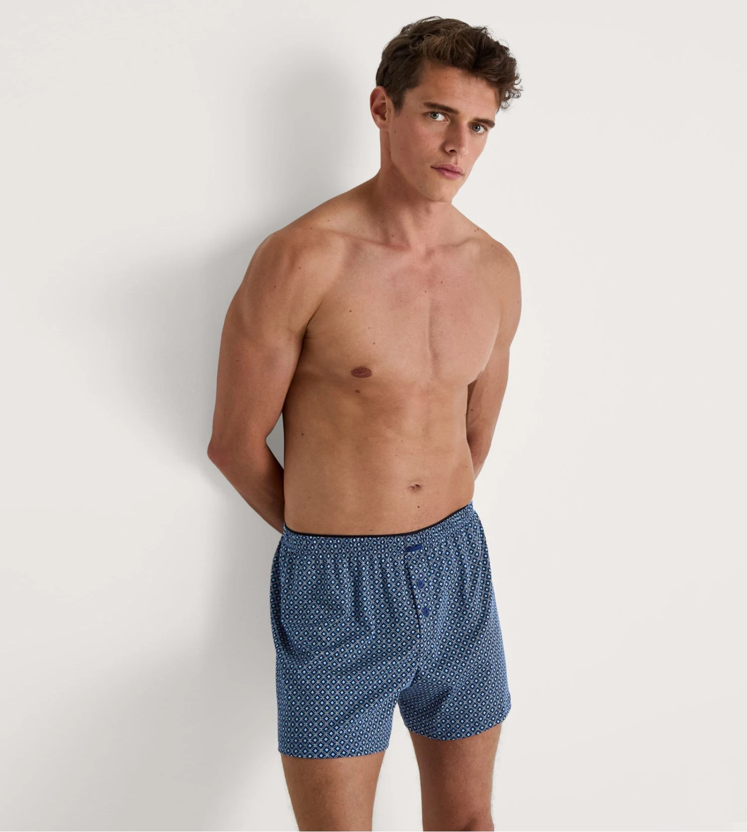 Ce modèle se distingue par son coloris Pottery Blue profond, agrémenté d’un motif graphique géométrique délicat qui apporte une touche de texture visuelle. Sa coupe décontractée et sa braguette boutonnée offrent une liberté de mouvement totale et un bien-être naturel.