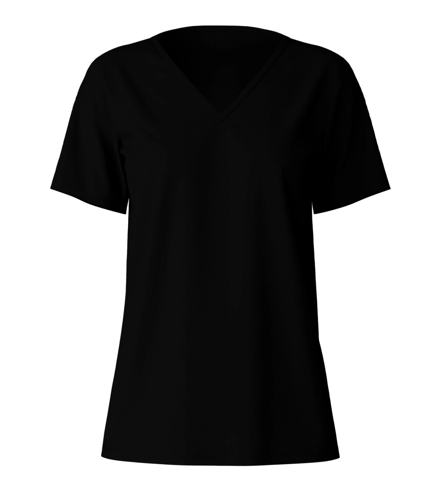 - Détails Visuels : Encolure en V sophistiquée qui sublime le décolleté, manches courtes fluides et un tissu en jersey noir intense au fini soyeux pour un look minimaliste.