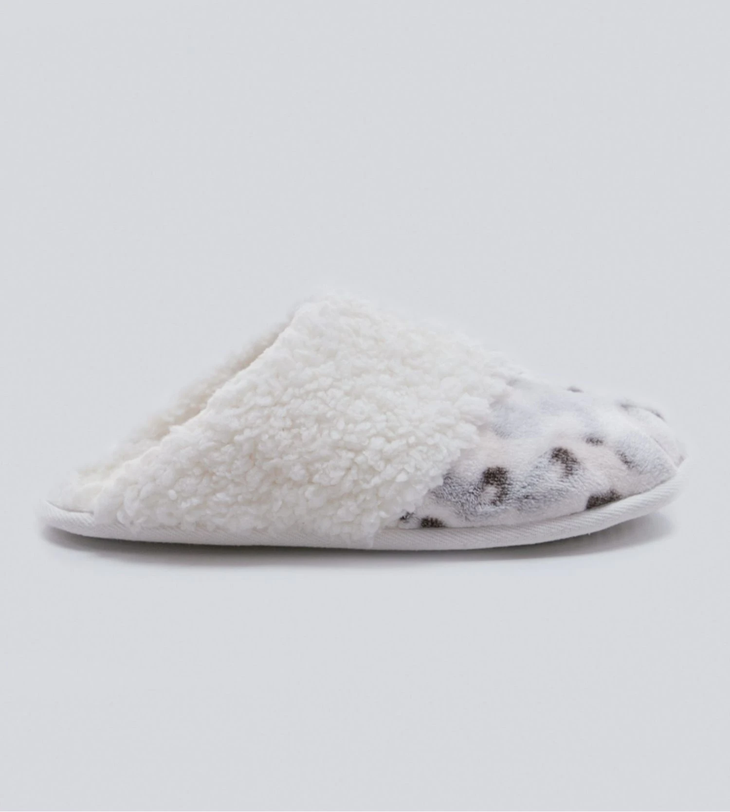 Ce modèle se distingue par sa base grise élégante, sublimée par un grand motif cœur à l’imprimé léopard sur le dessus. Cette touche de fantaisie sauvage apporte une note de modernité à ce grand classique du homewear. Sa forme mule permet de les enfiler facilement tout en gardant vos pieds dans un cocon de chaleur.