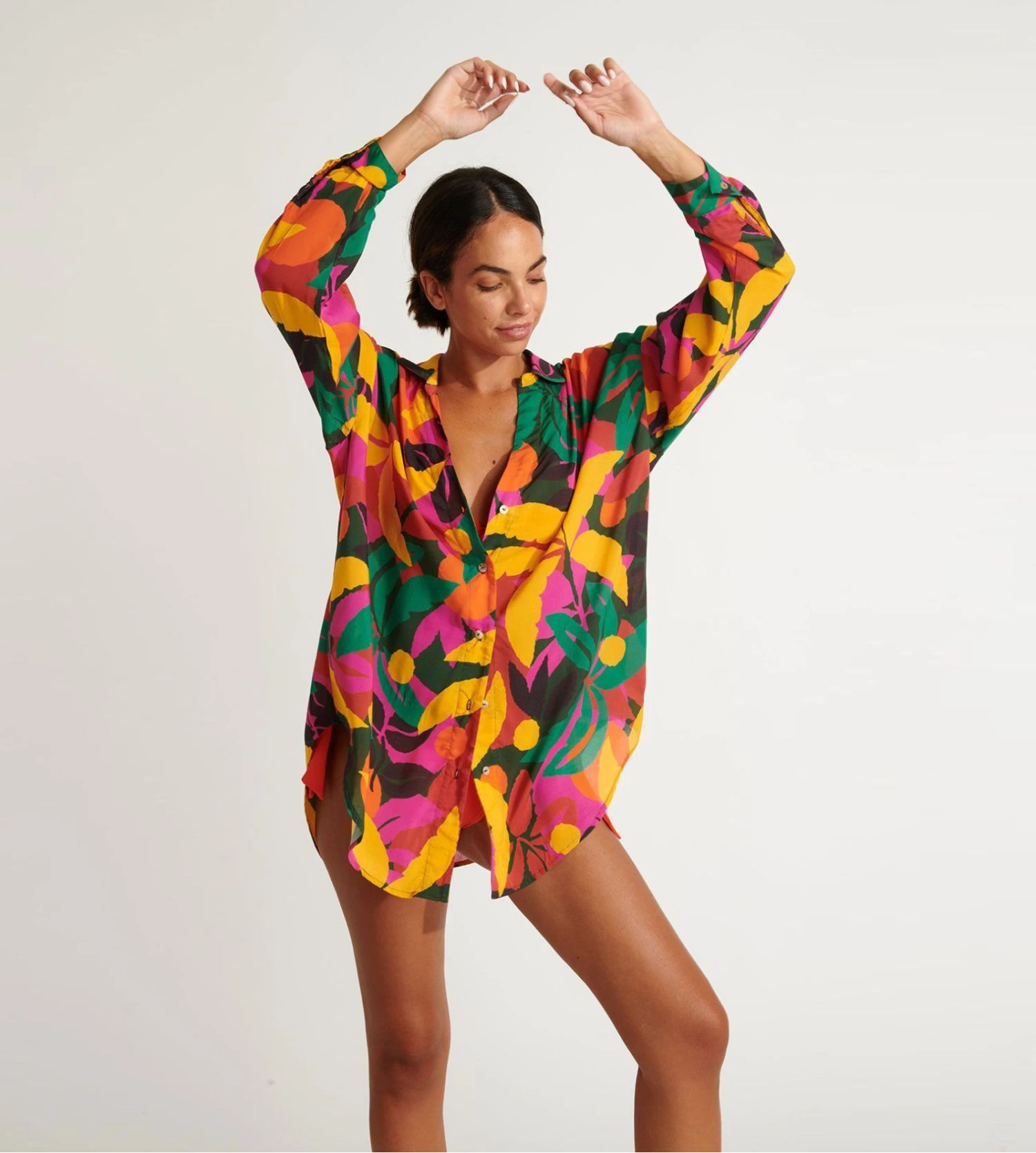 - A porter de différentes manières : fermée et boutonnée pour un look chic ou ouverte sur un top ou un maillot de bain. Avec manches longues ou bien retroussées.