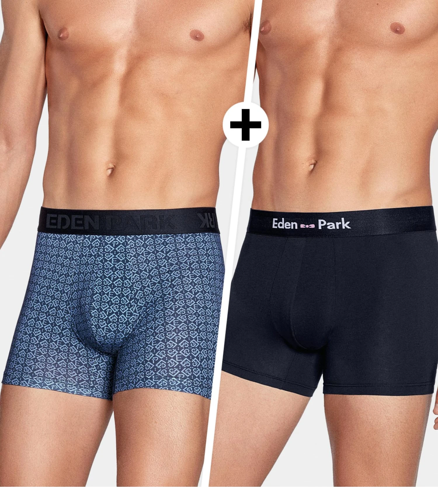 Ce pack exclusif présente un contraste élégant : un boxer d’un bleu marine profond et uni pour la sobriété, accompagné d’un second boxer arborant un imprimé de qualité. Chaque pièce est magnifiée par une large ceinture élastique confortable ornée du logo Eden Park, apportant une touche signature à ce sous-vêtement premium.