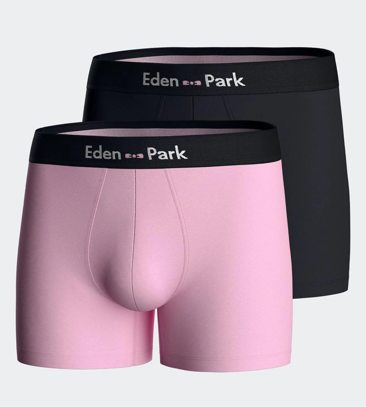 Ce pack propose deux coloris essentiels : un rose dynamique audacieux et un bleu marine classique intemporel. Chaque pièce est dotée d’une large ceinture élastique contrastée, ornée du logo Eden Park, offrant une signature visuelle élégante et un maintien impeccable tout au long de la journée.