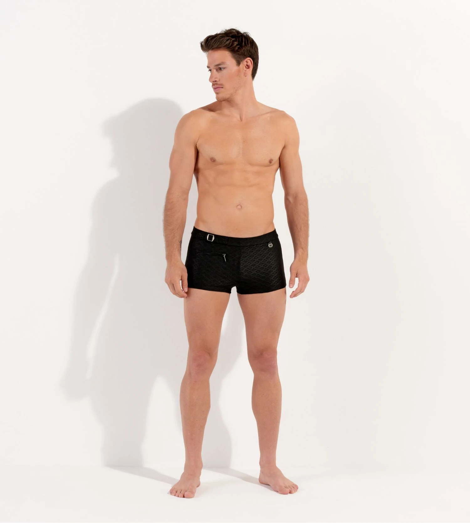 - Logo en médaillon argenté sur la ceinture.