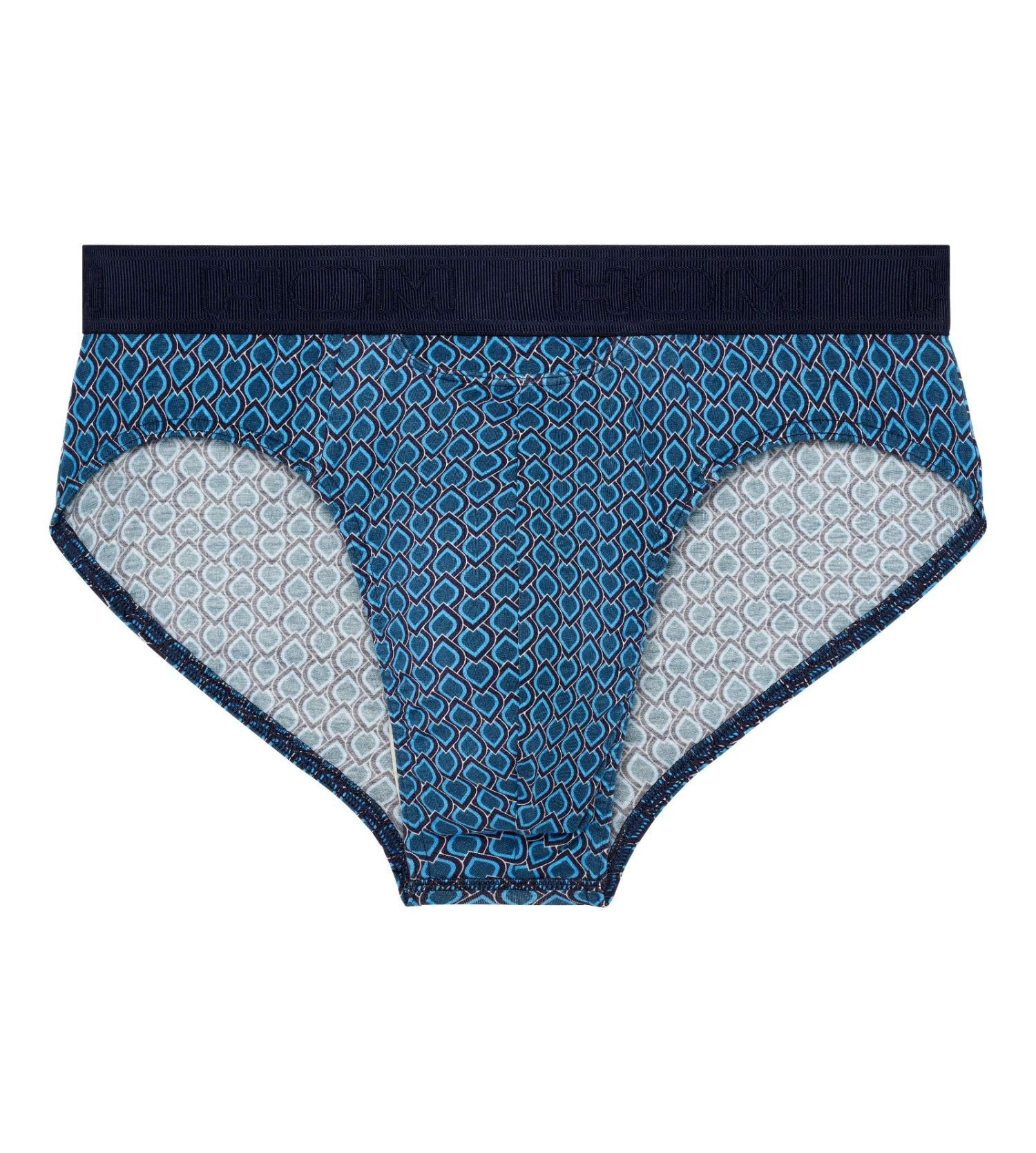 Le modèle Martinez présente un motif imprimé bleu profond sur une base sombre, complété par une ceinture en microfibre douce ornée du logo HOM. Sa coupe ergonomique et ses finitions soignées en font une pièce maîtresse de la lingerie masculine haut de gamme.
