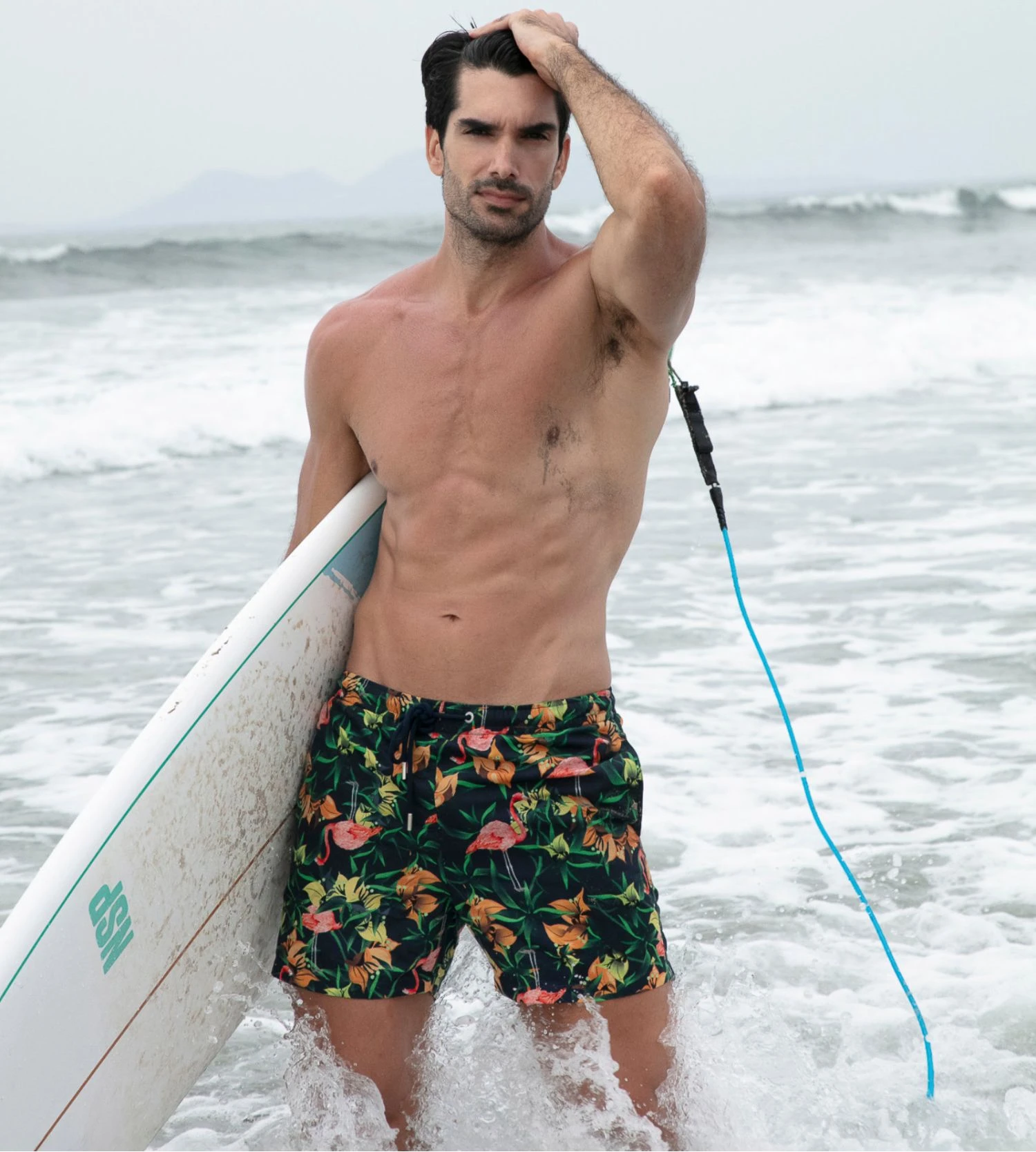 Profitez de l’été avec le short de plage Flamingo de la marque HOM, conçu pour allier confort et esthétique moderne. Ce modèle se distingue par son imprimé vibrant de flamants roses sur un fond bleu marine profond, créant un contraste visuel rafraîchissant idéal pour la plage ou la piscine. Sa coupe courte et sa conception légère vous assurent une liberté de mouvement totale tout en restant élégant.