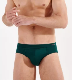 Le slip HO1 Tencel Soft de la marque française HOM est une pièce maîtresse du vestiaire masculin premium, ici décliné dans un coloris vert foncé (Dark Green) élégant et profond. Conçu en jersey de Lyocell (soie végétale), ce sous-vêtement offre un fini mat soyeux et une texture incroyablement fluide qui respecte les peaux les plus sensibles.