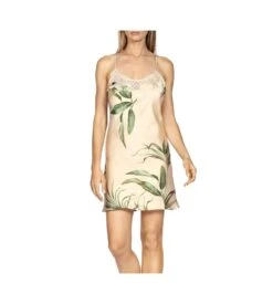 Coemi Nuisette en Satin Motif Feuillage Palmera et Dentelle – Lingerie de Nuit Sexy