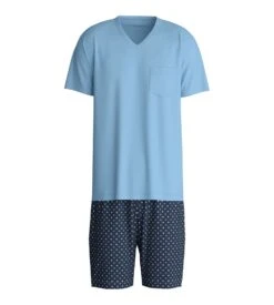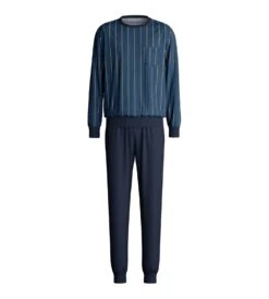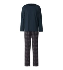 Calida Pyjama Foncé Homme Col En V 100% Coton Avec Pantalon Imprimé Relax Streamline Saphir Blue