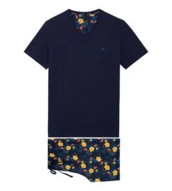 Ensemble De Pyjama Court Pour Homme Imprimé Bouquet Bordeaux