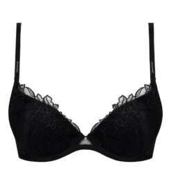 Le décolleté de ce soutien-gorge mousse évoque la pointe d’un cœur. Les bonnets, échancrés au milieu et montants sur les côtés, enveloppent parfaitement la poitrine. La ligne de décolleté est ornée d’une broderie délicate qui épouse parfaitement les contours de la poitrine.