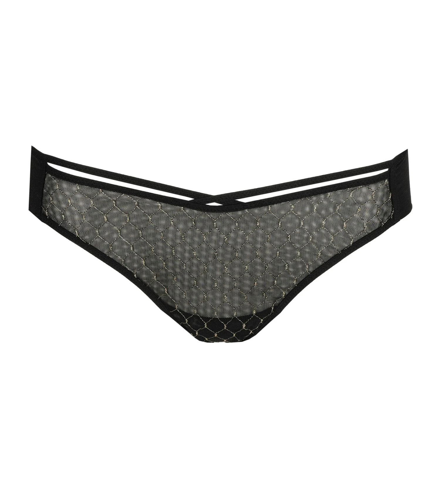 Marie Jo Colima est à la fois sexy et audacieuse. Le mélange de tissus transparents avec des détails dorés complète parfaitement cette série.
