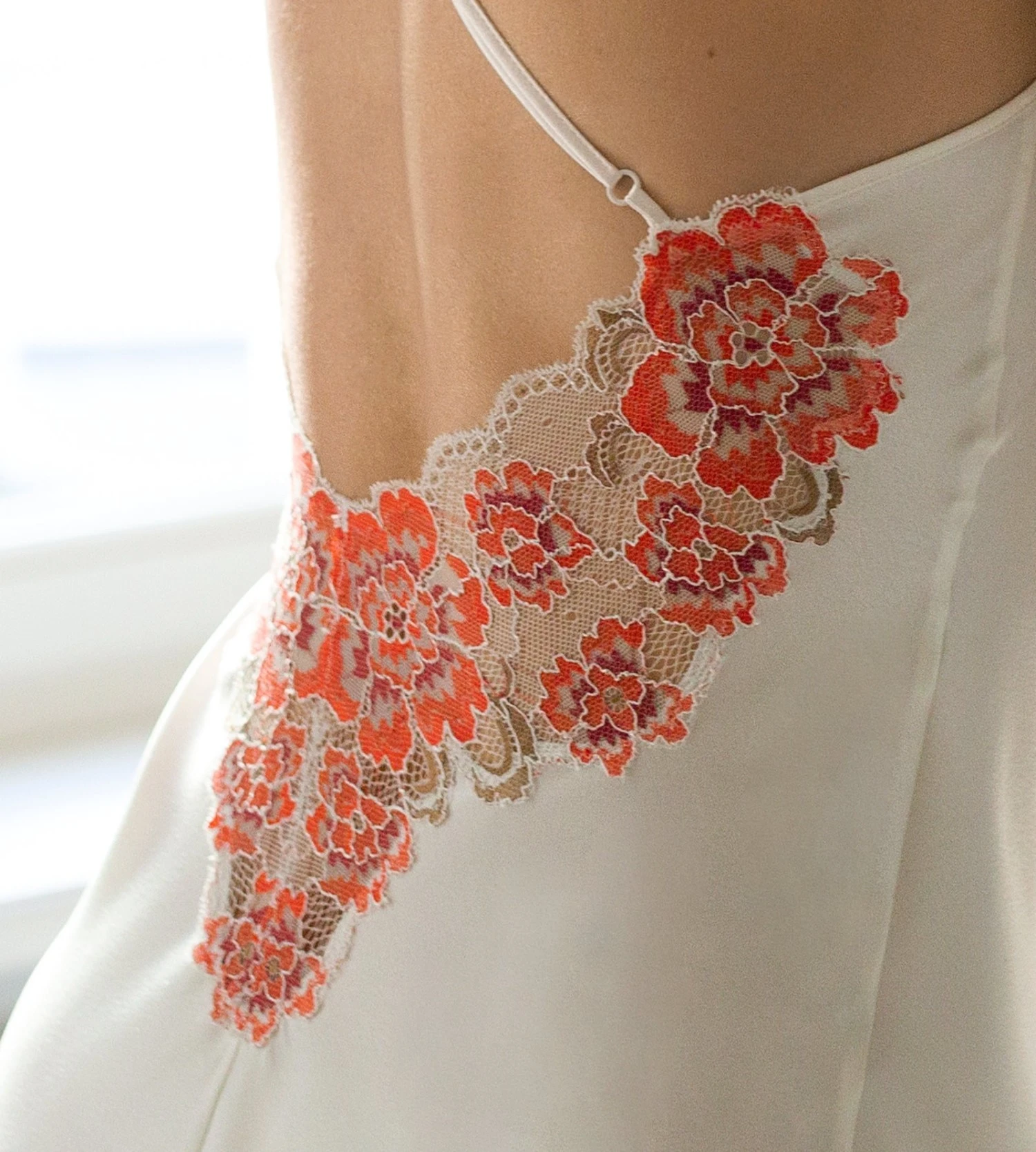 - Empiècement de dentelle florale sur le dos et le décolleté.