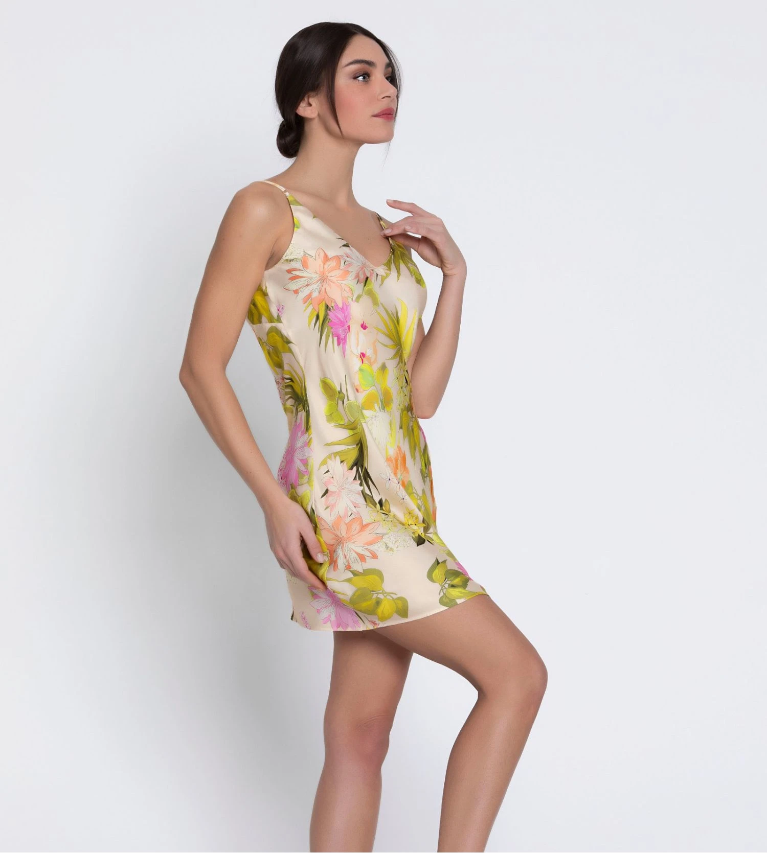 - Imprimé aux motifs floral et aux couleurs acidulées et solaires.