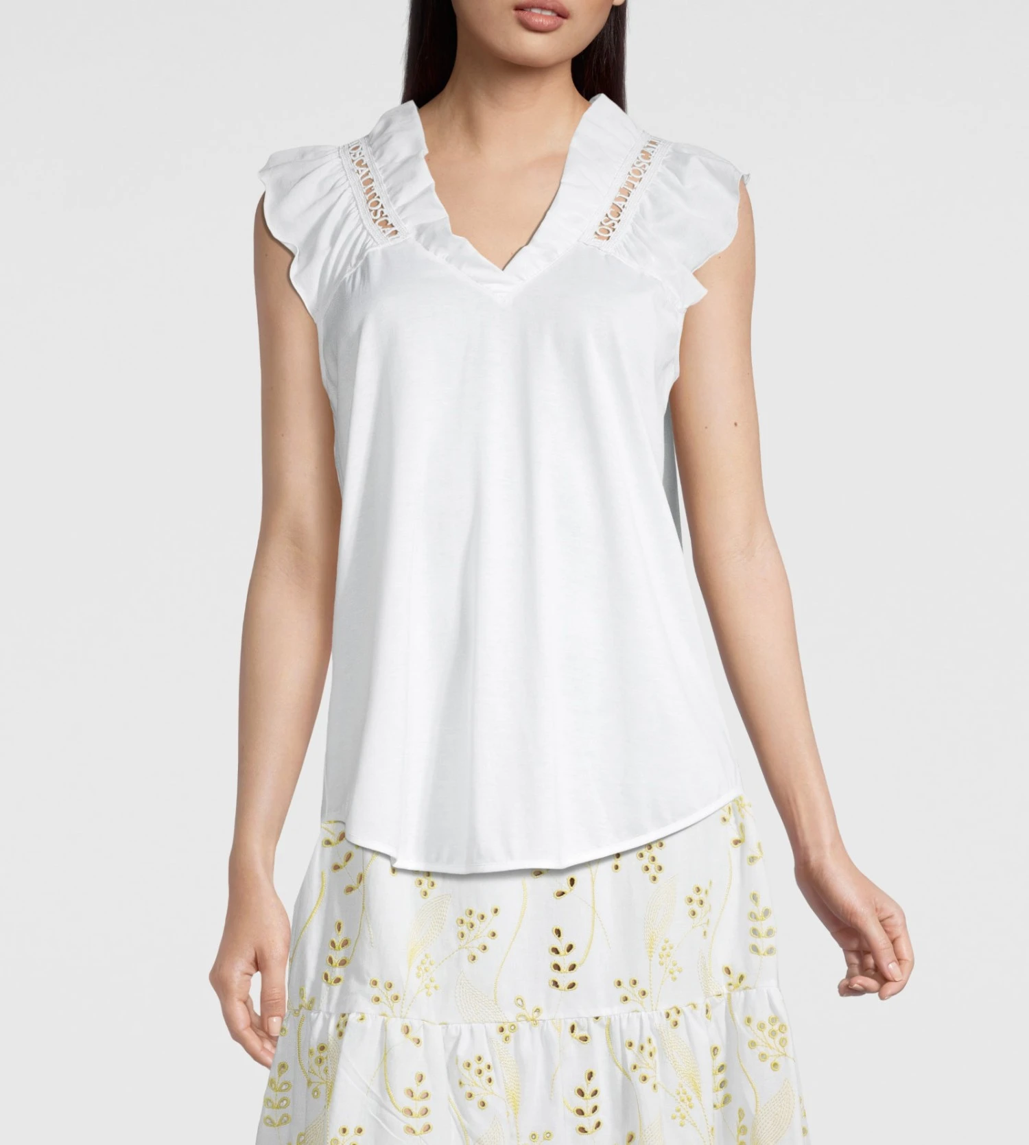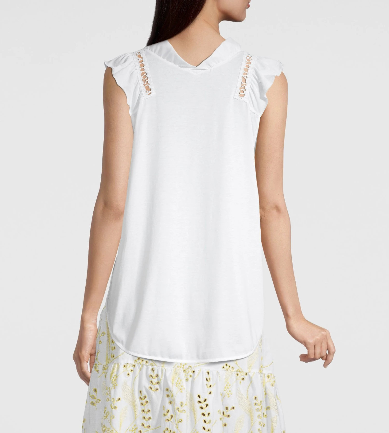 Redécouvrez l’élégance artisanale italienne avec ce top raffiné de la maison Oscalito, une pièce essentielle alliant la douceur du coton pur à des détails de dentelle sophistiqués. Ce top blanc immaculé se distingue par sa maille en jersey fluide et ses empiècements en macramé délicat qui subliment la carrure et le décolleté.
