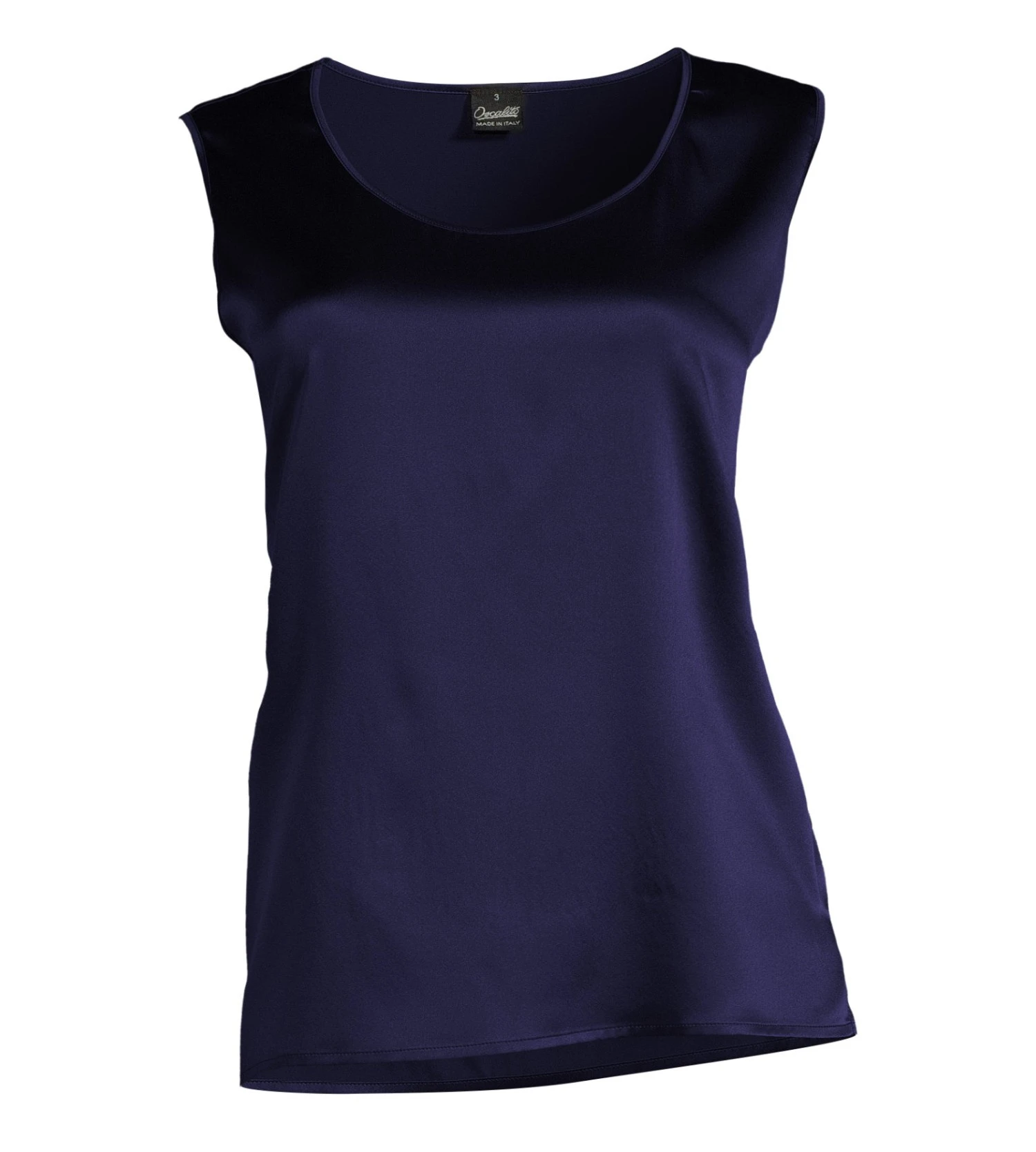 Ce caraco Oscalito en satin de soie stretch bleu marine allie un éclat luxueux à une souplesse incomparable pour un confort absolu au quotidien. Confectionné avec le savoir-faire artisanal italien, ce top se distingue par sa finition satinée lumineuse et sa coupe épurée.