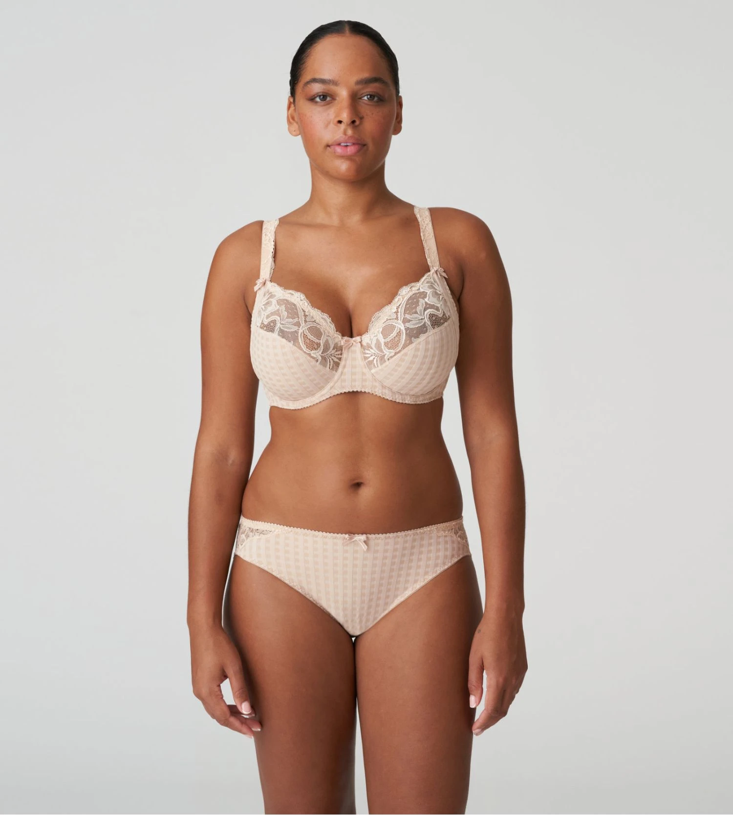 MADISON | Il suffit d’un seul essayage pour comprendre l’immense succès de la série Madison de PrimaDonna. Son ajustement unique – avec une dentelle qui suit parfaitement les contours du corps – assure un maintien optimal aux poitrines pulpeuses. Quant aux ravissants petits carreaux, on ne peut qu’être sous le charme !