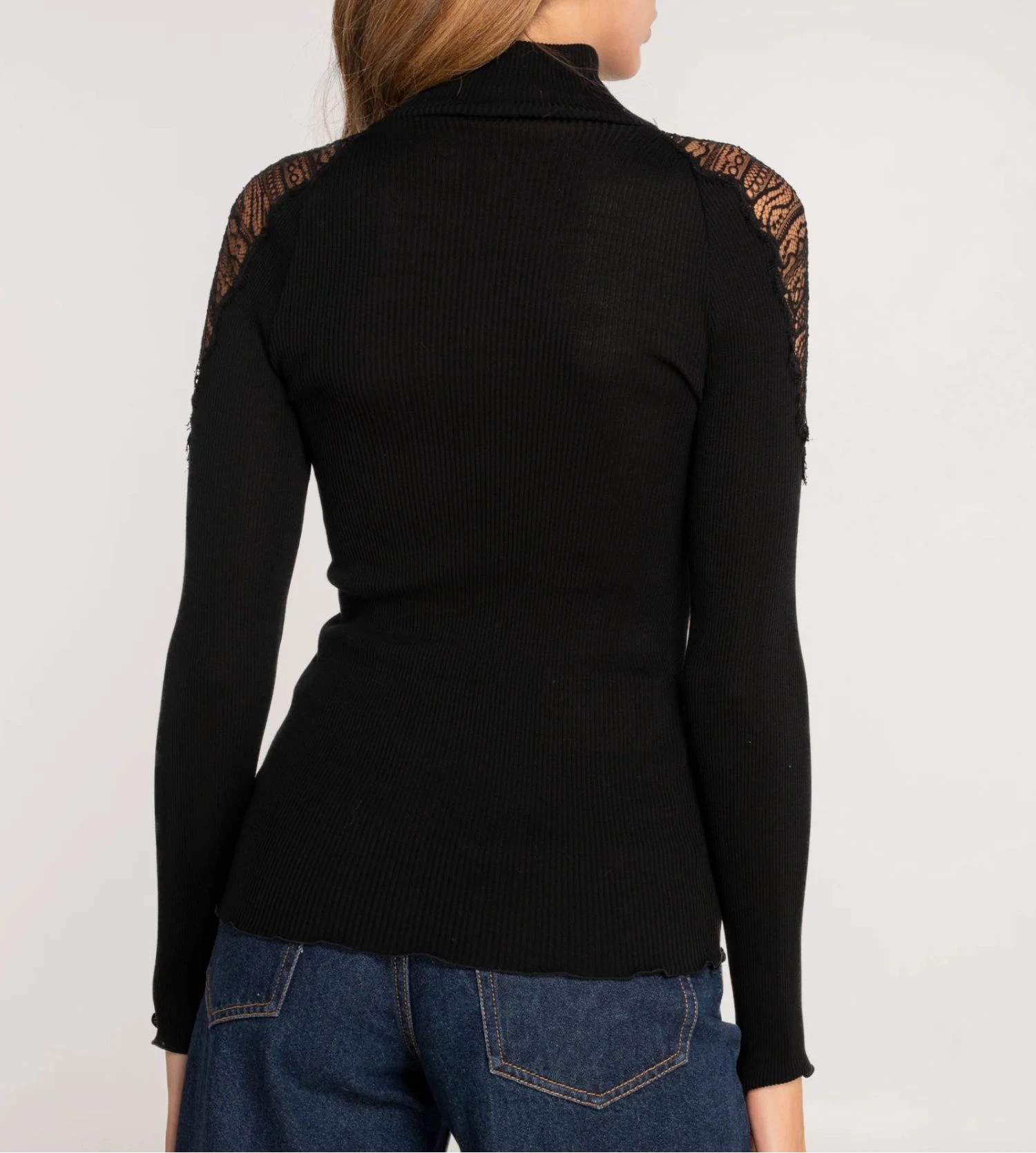 - Épaules recouvertes de dentelle.