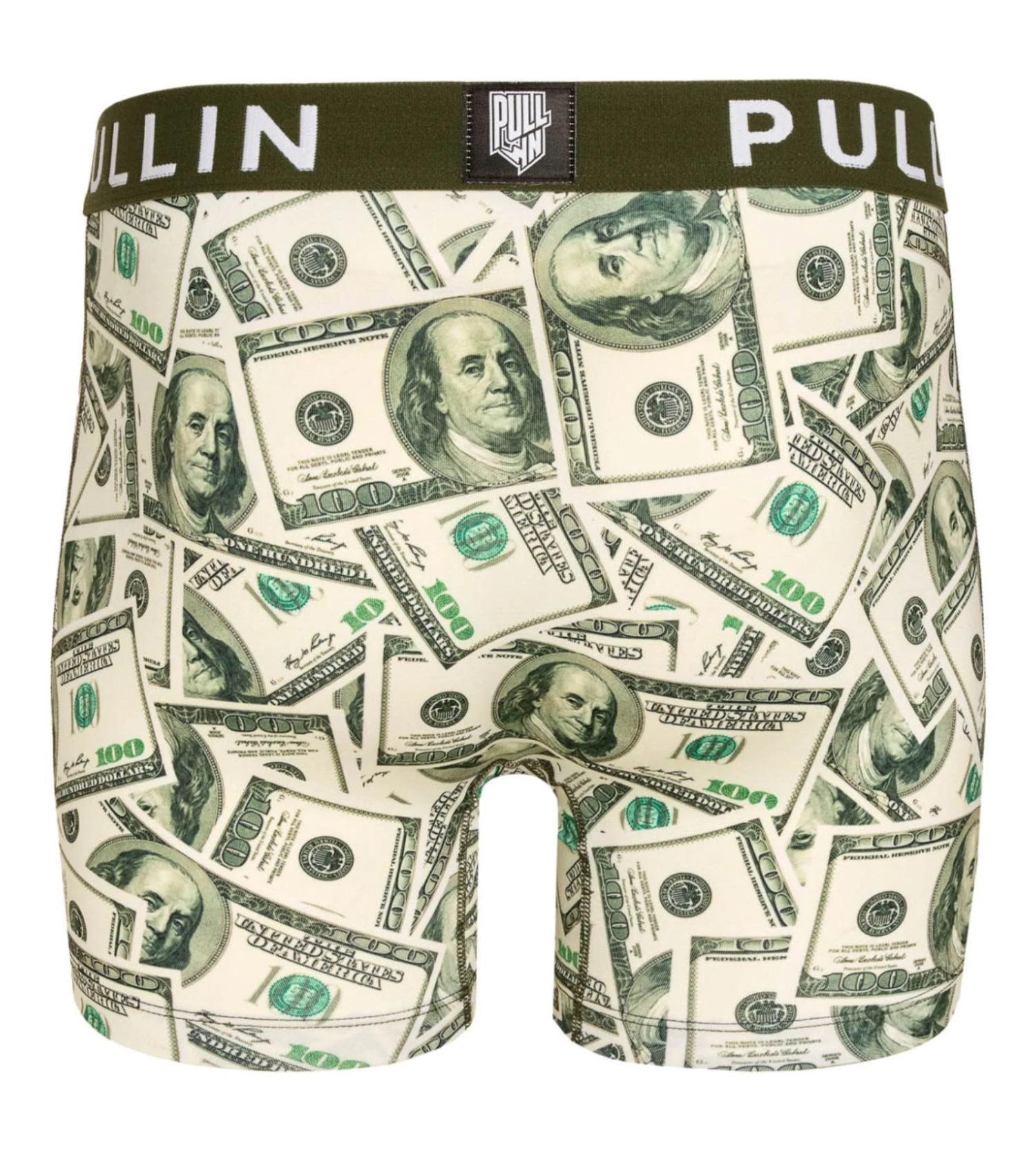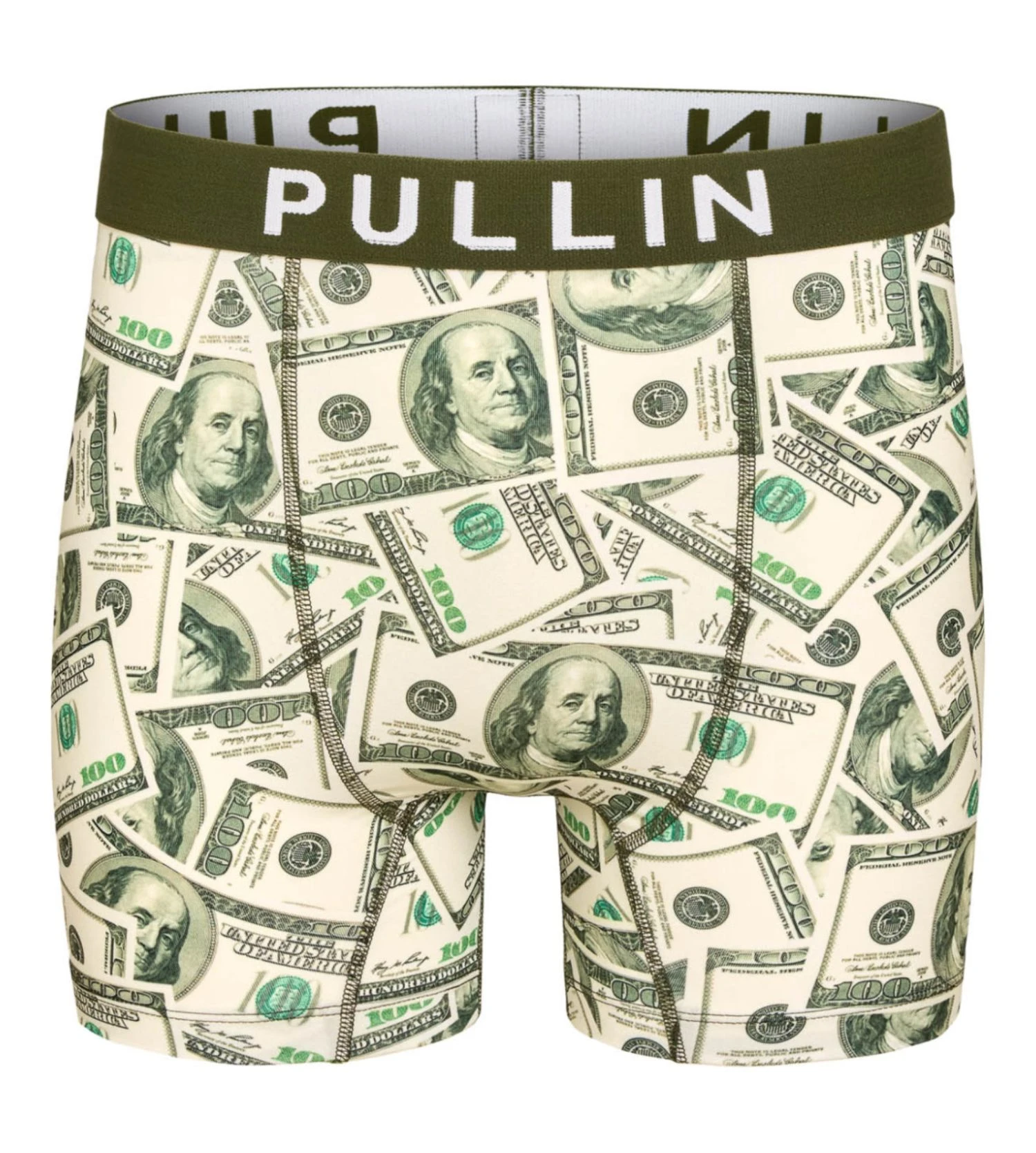 Le modèle CASHHH arbore un imprimé graphique intégral inspiré de l’argent et des billets de banque, apportant une note d’humour et de luxe décontracté à votre tiroir à sous-vêtements. Sa coupe longue à mi-cuisse assure un galbe parfait, tandis que la ceinture élastique en jacquard tissée en Europe vient parfaire ce look sophistiqué avec l’étiquette PULLIN tissée au dos.