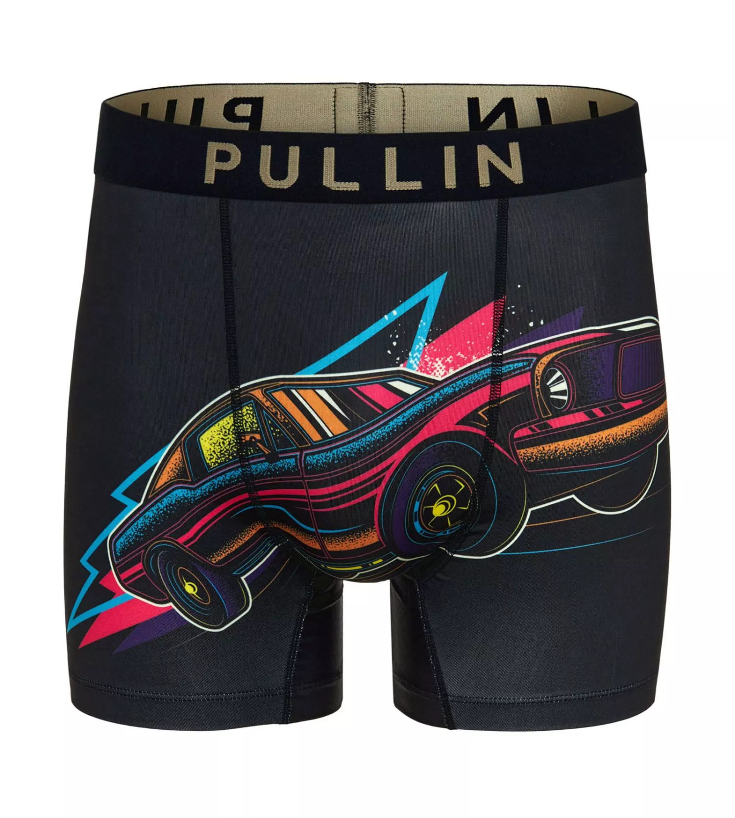Détails Visuels : Ce modèle se distingue par son imprimé exclusif ‘Chickenrun’, un motif coloré et humoristique inspiré de l’univers de la ferme. Il arbore une ceinture élastique en jacquard tissée en Europe, contrastée par le logo PULLIN iconique au dos.