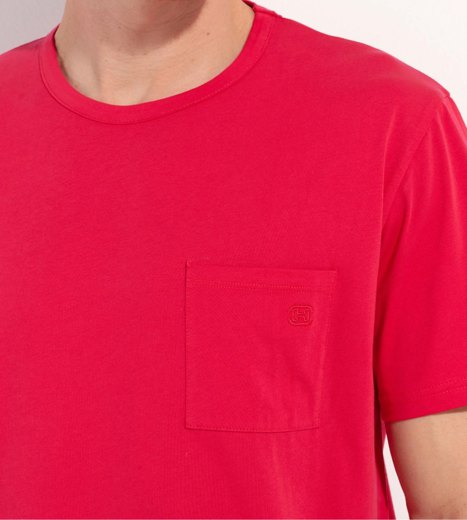 Cet ensemble se distingue par son t-shirt noir profond à manches courtes, rehaussé d’une poche poitrine fonctionnelle où le logo HOM est délicatement brodé. Le short crée un contraste visuel fort avec son imprimé graphique rouge et noir, apportant une dynamique visuelle unique. La coupe est pensée pour la liberté de mouvement, que ce soit pour dormir ou pour le homewear.