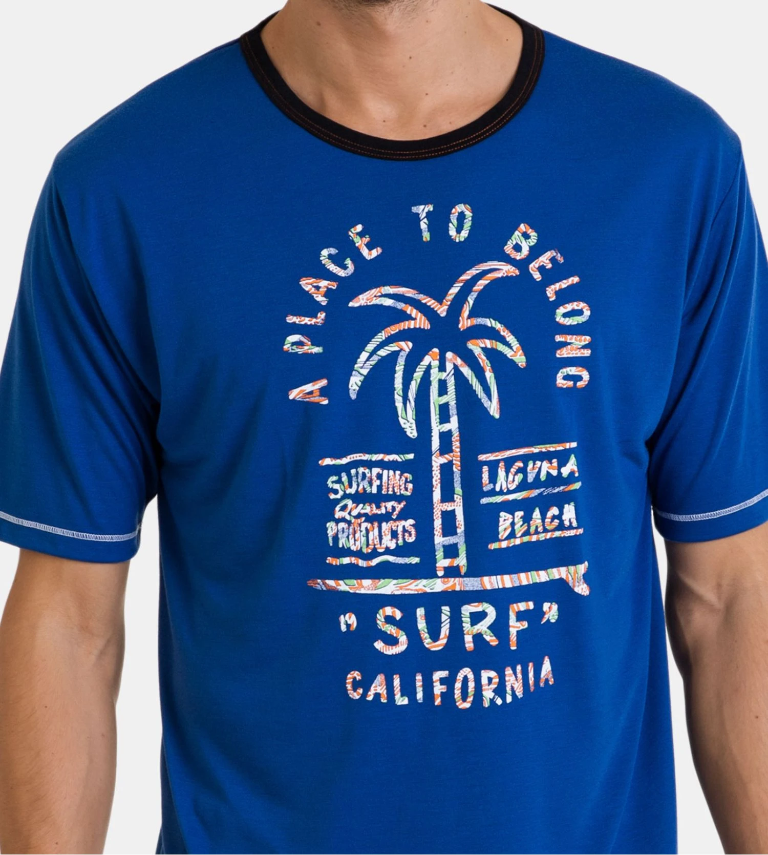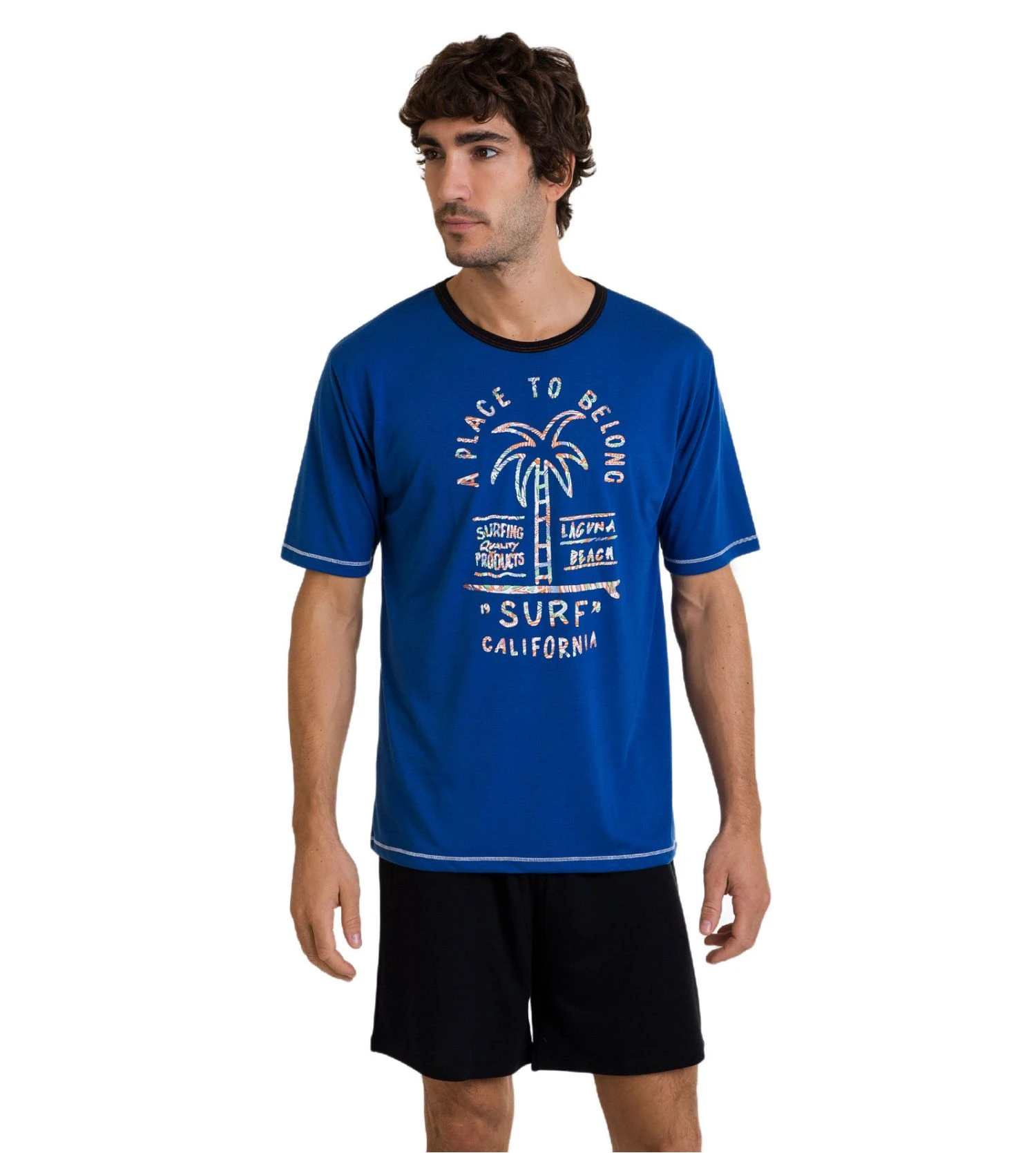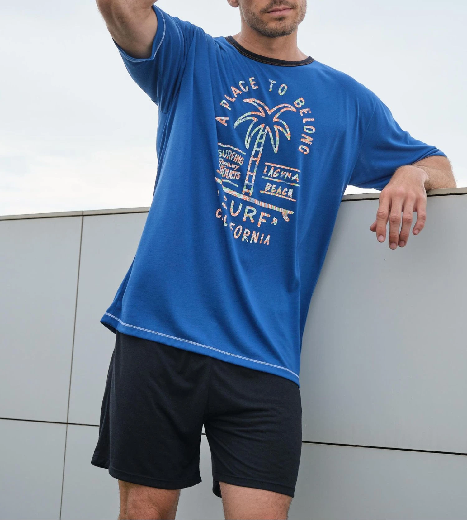 - T-shirt : Coupe légère à manches courtes, col rond avec liseré contrasté, imprimé graphique haute qualité.