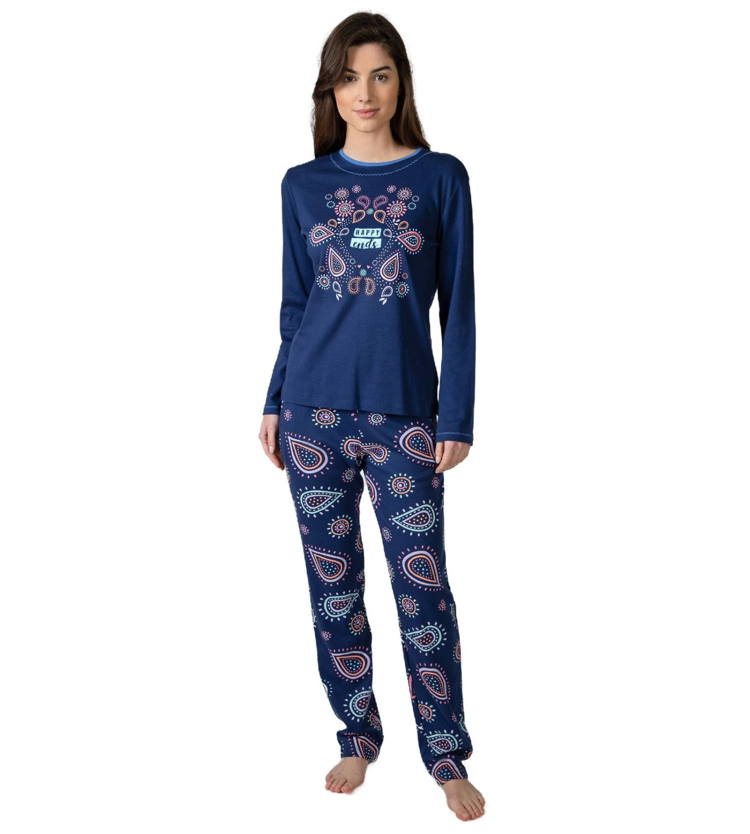 Spécifications : Marque : Massana, Coloris : Bleu Marine / Imprimé Multicolore, Style : Pyjama long deux pièces.