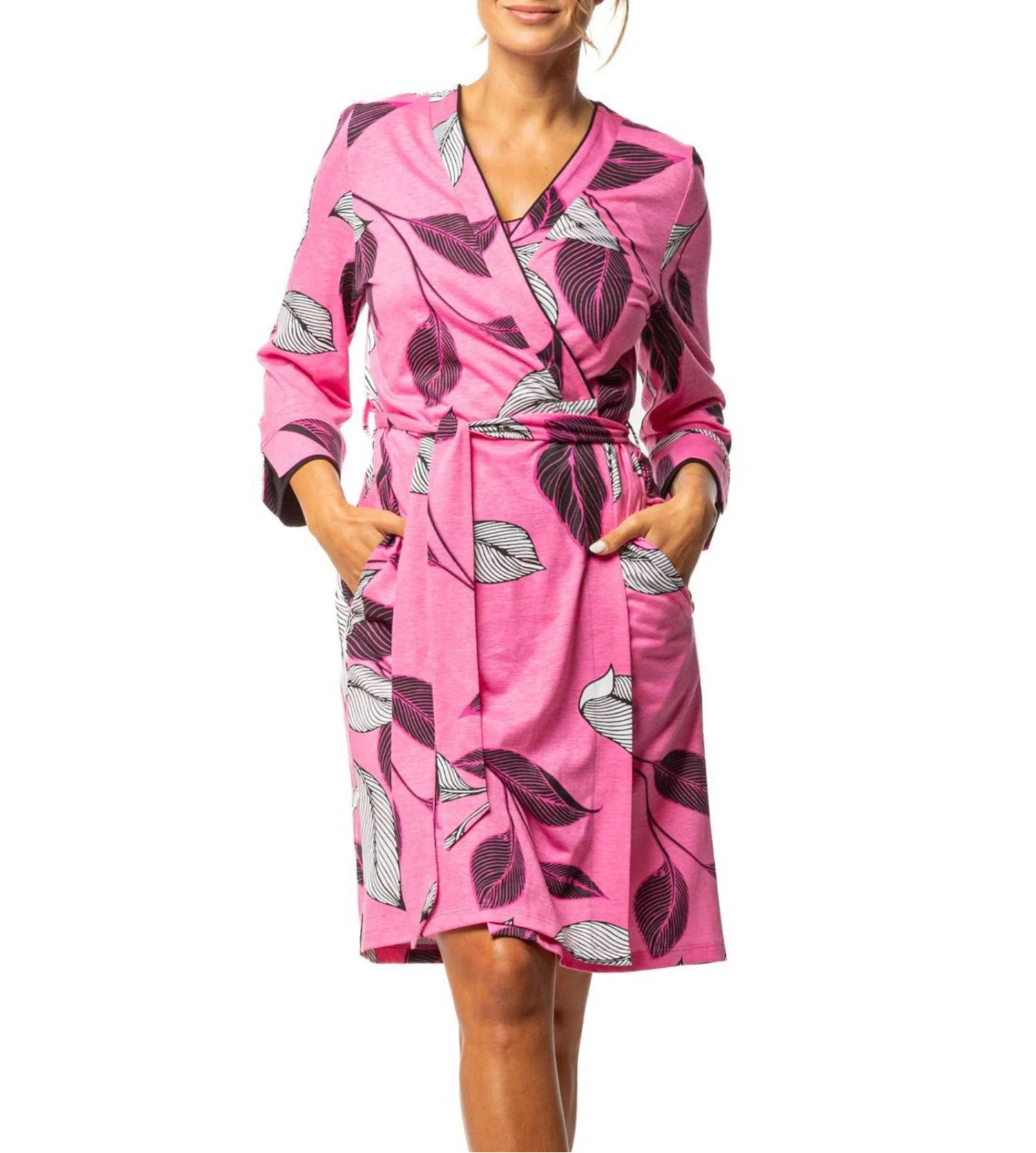 Conçue pour allier confort et élégance, cette pièce se distingue par sa teinte fuchsia vibrante et ses finitions soignées. Sa coupe croisée et sa matière respirante en font l’alliée parfaite pour les douces matinées d’été ou les soirées de détente à la maison.