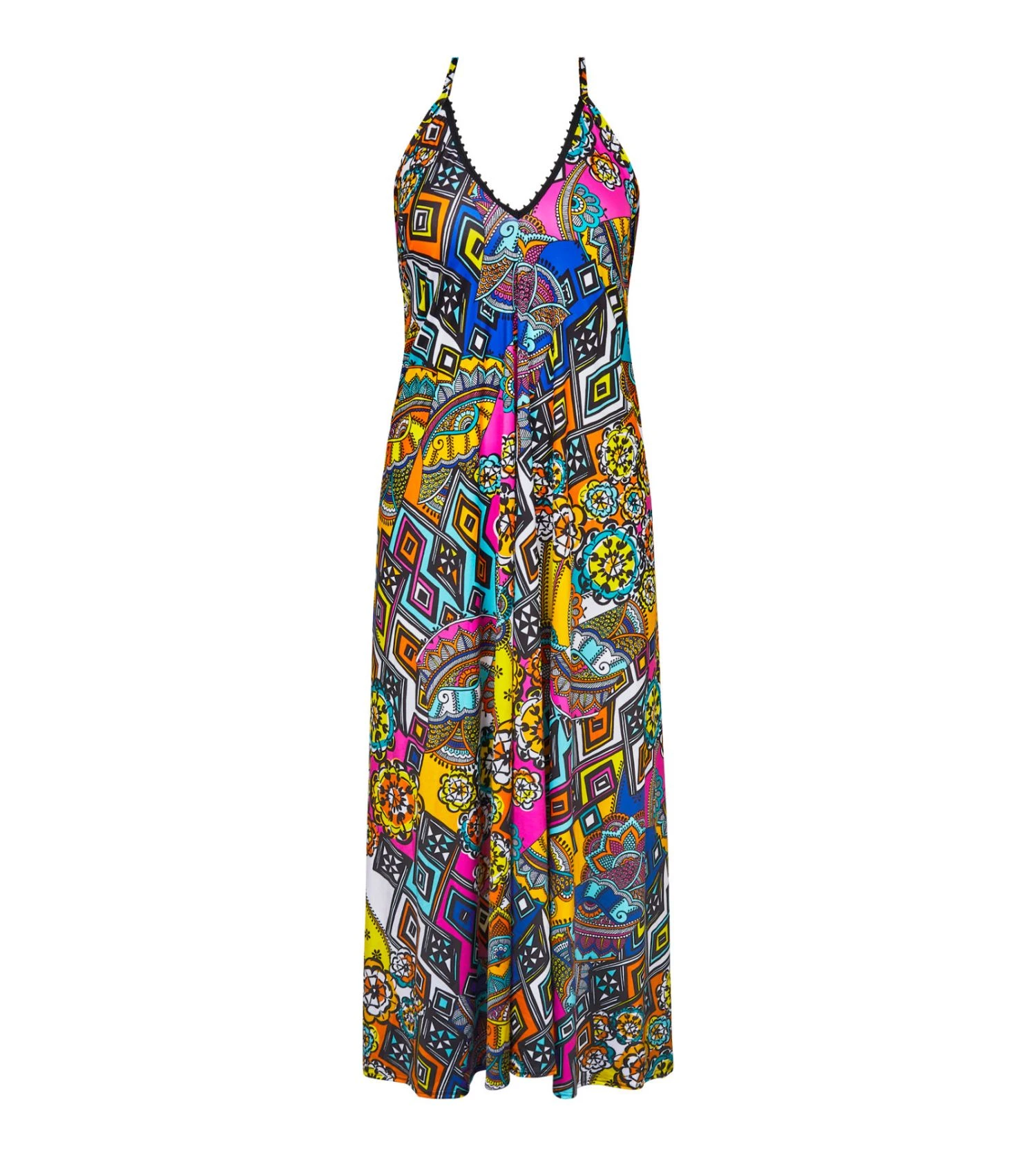Laissez-vous transporter par l’énergie vibrante de la collection La Nomade d’Antigel. Cette robe longue de plage, dans son coloris Éclat Nomade, est une véritable invitation au voyage, fusionnant des inspirations artisanales indiennes et africaines pour un look bohème-chic irrésistible.