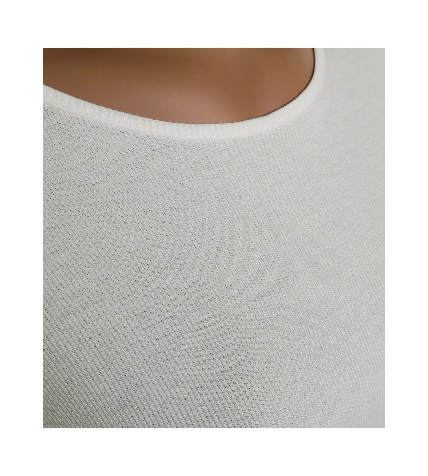 Ce t-shirt se distingue par sa finition en fines côtes verticales qui allongent la silhouette et sa couleur blanc pur immaculé. La viscose naturelle apporte un éclat soyeux et un toucher d’une douceur exceptionnelle, idéal pour les peaux sensibles.