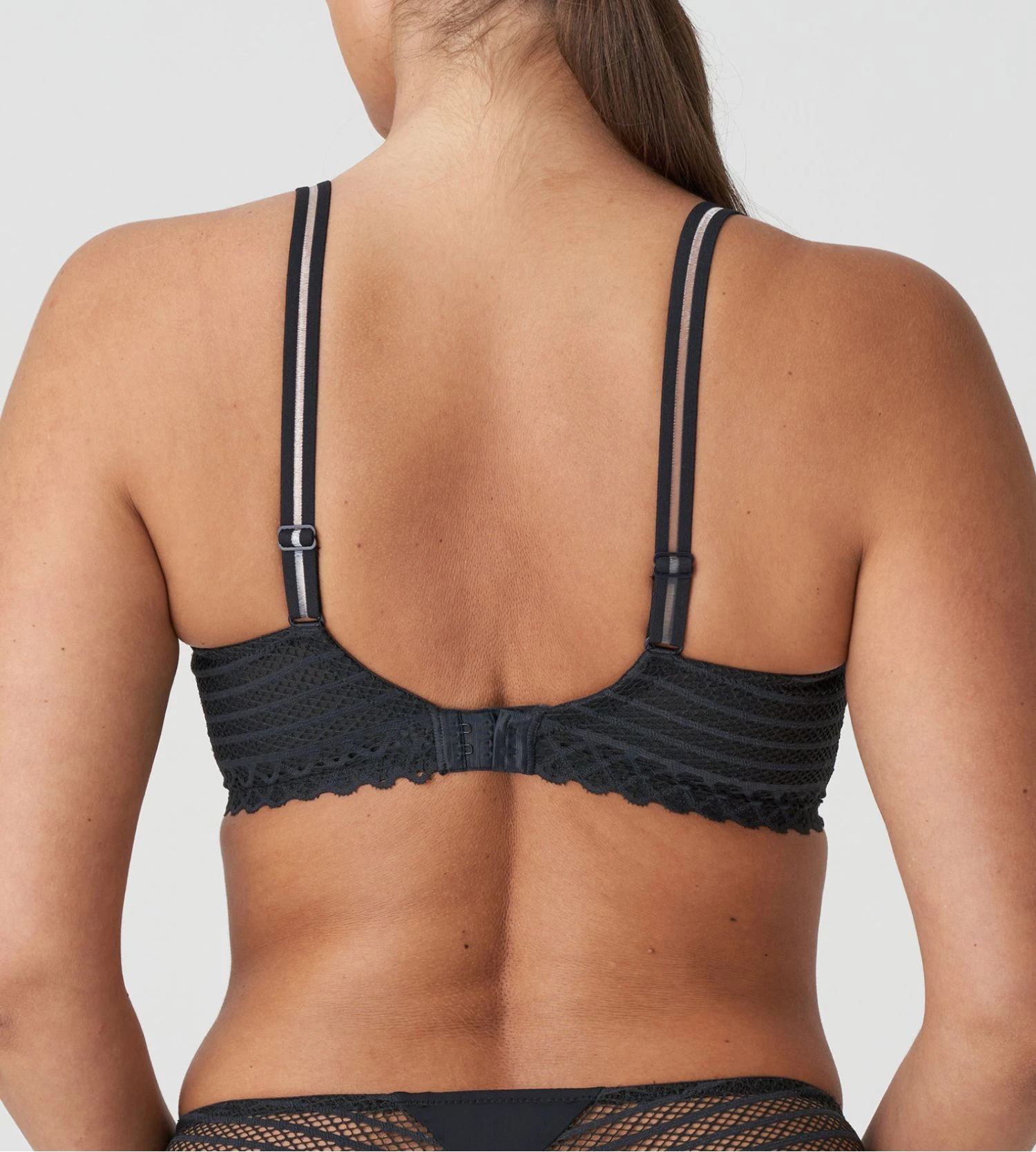 - Dos en dentelle ajourée et doublé de tulle extensible.