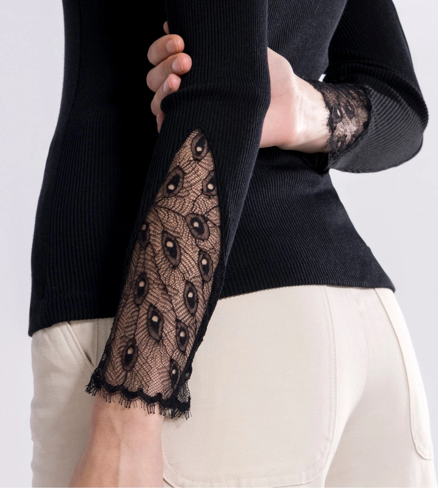 - Dentelle de Calais sur le décolleté et sur le bout des manches.