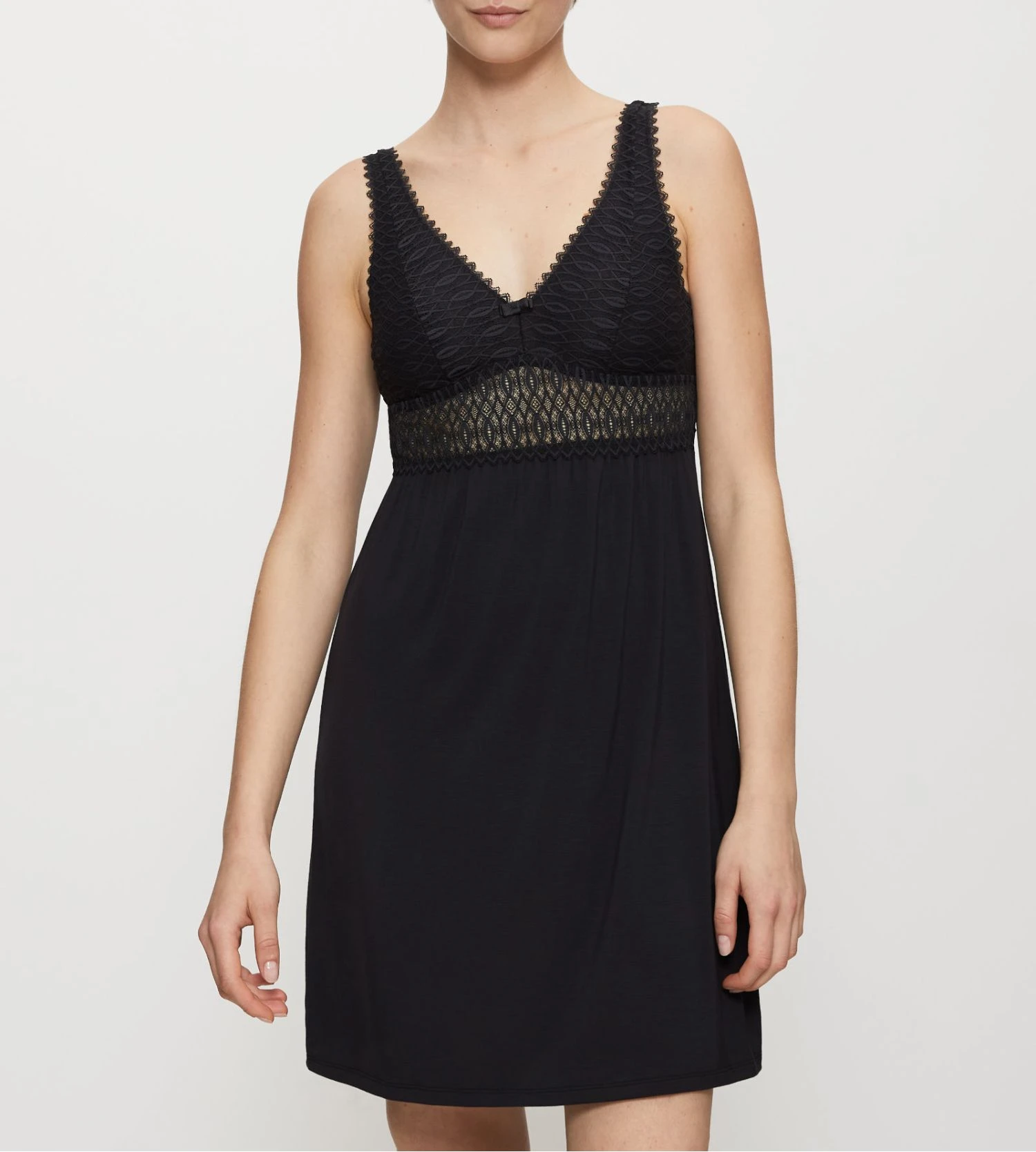 Cette nuisette se pare d’un coloris Noir intemporel, rehaussé par des bonnets recouverts d’une dentelle florale délicate qui apporte une touche de transparence féminine. Sa confection en Tencel Modal premium assure une sensation de légèreté et de fraîcheur sur la peau, idéale pour des nuits paisibles.