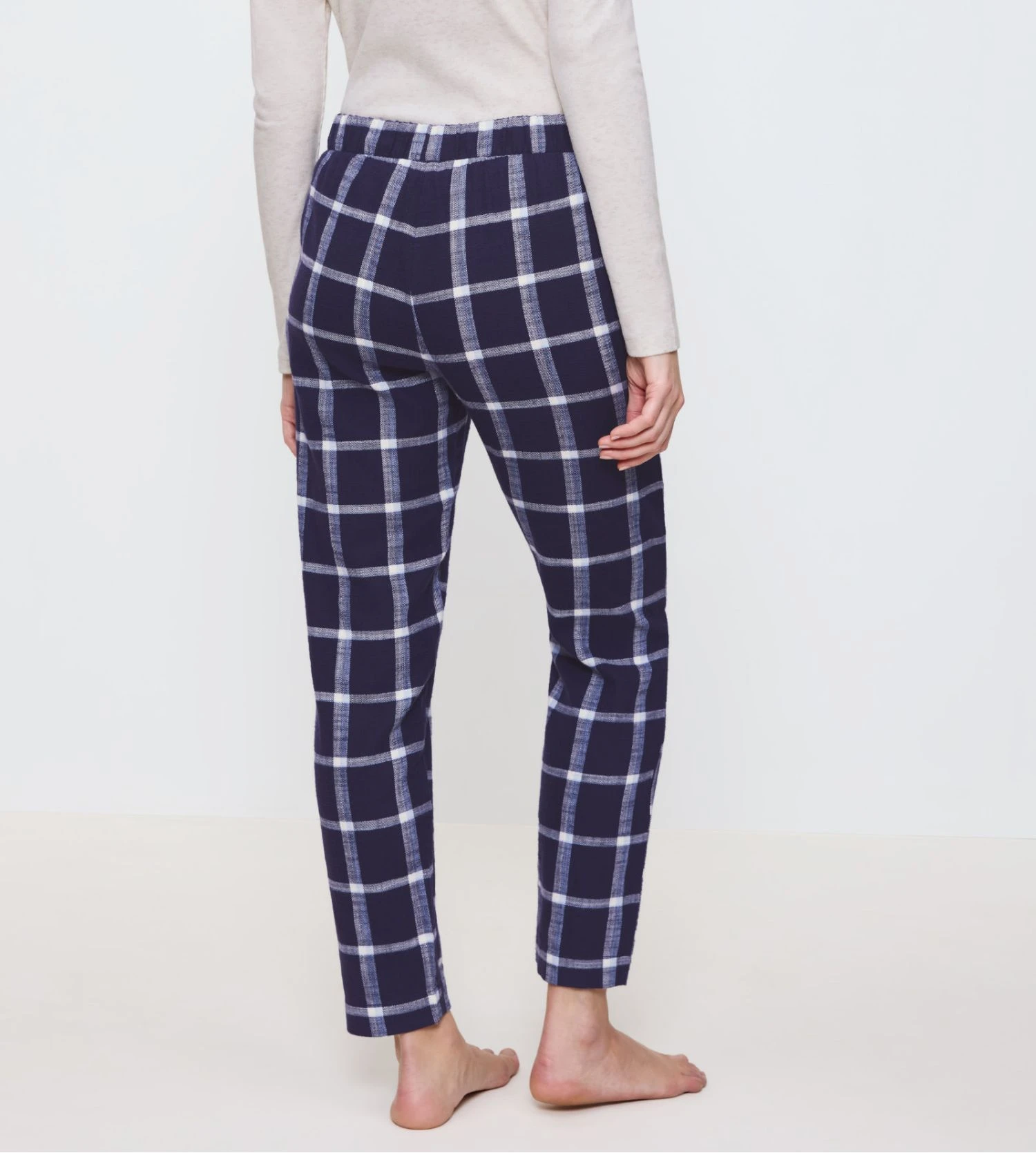 Ce modèle se pare d’un motif à carreaux gris intemporel, accentué par une texture en flanelle brossée qui apporte un aspect chaleureux et cocooning. Sa coupe droite offre une silhouette moderne tout en garantissant une liberté de mouvement totale. Le souci du détail se retrouve dans sa poche arrière discrètement ornée du logo Triumph.