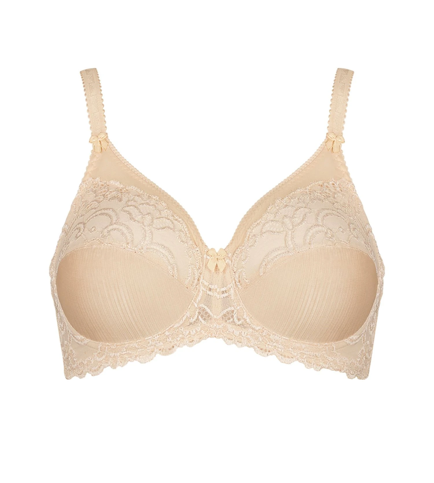 Le soutien-gorge Romy W Triumph avec armatures, offre un maintien infaillible grâce au plastron doublé sur l’avant. Ses finitions en dentelles le rendent particulièrement élégant.